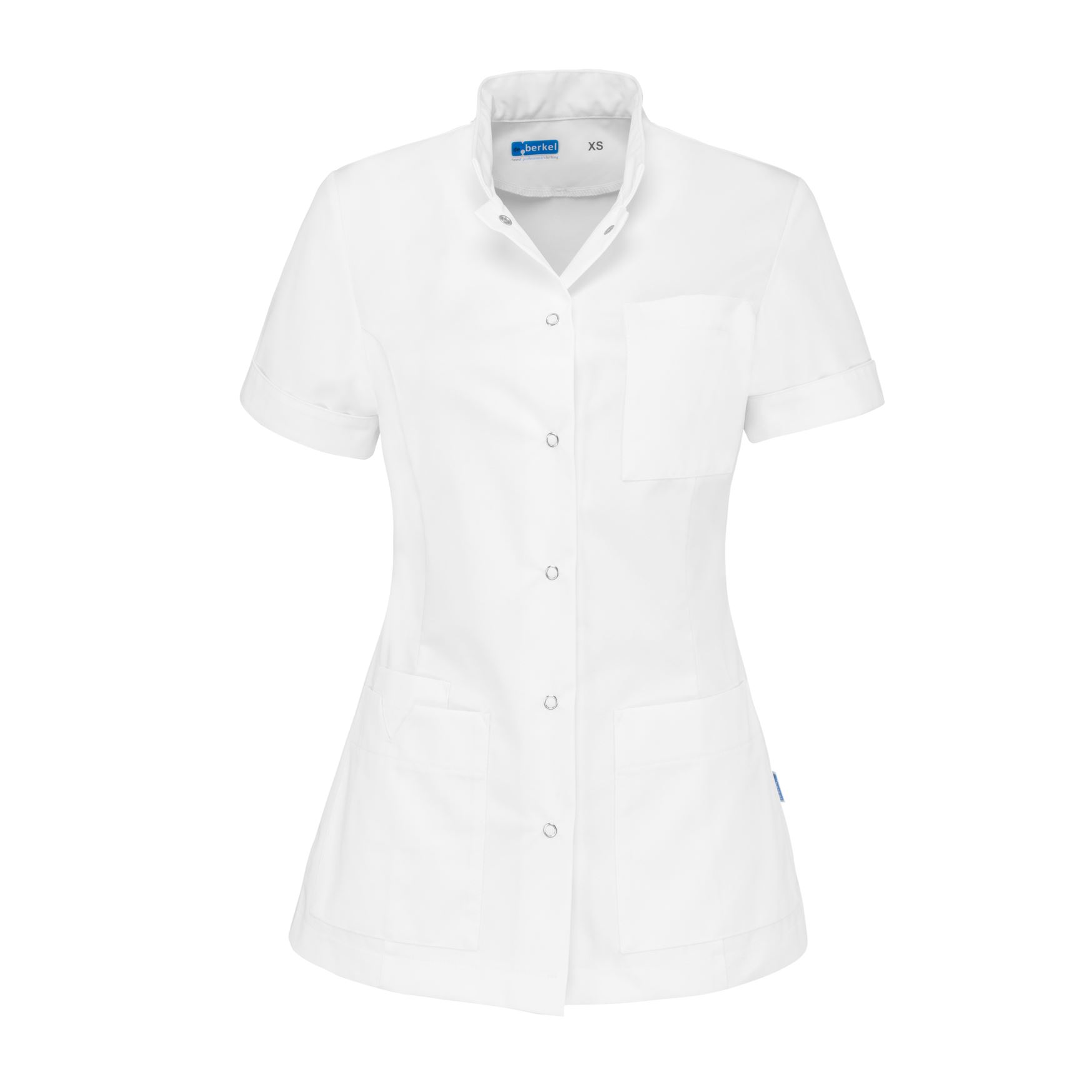 Kort getailleerd damesjack met openstaande boord, diverse zakken met o.a. telefoonzak, kleurafzettingen aan binnenzijde van boord, mouwen zijsplitjes.